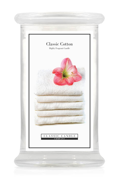 Classic Cotton Large Jar : A fresh clean cotton blossom reminiscent of breeze dried linen with a subtle citrus top note, and sweet floral base. A classic fresh fragrance.