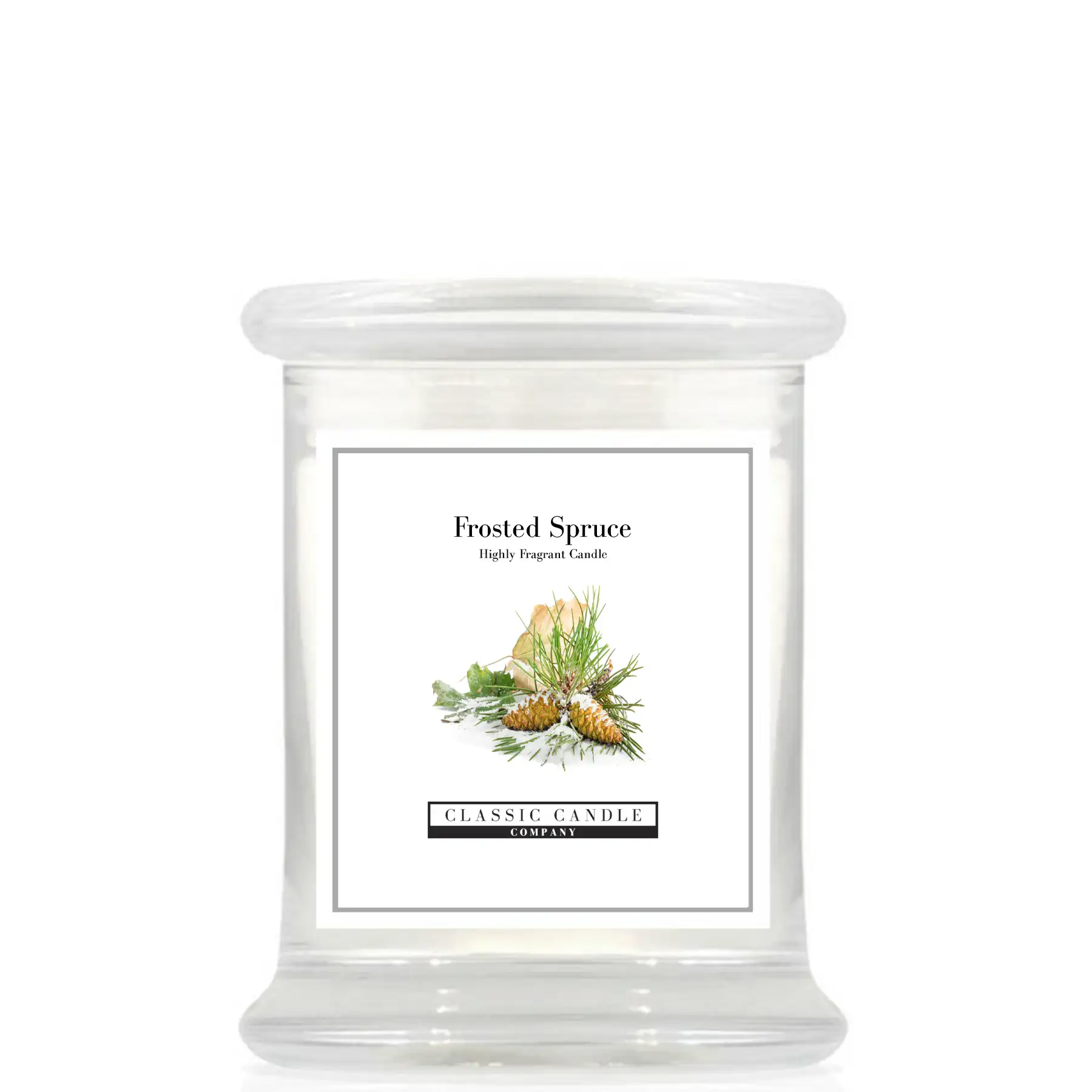 Frosted Spruce Medium Jar : Fresh, resinous fragrance of evergreen boughs, pine, fir, and blue spruce, evolves in to a crisp, woodsy aroma reminiscent of a winter forest.
